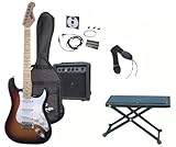 Pyle Mega Eletric Guitar & Accessories Package for Musicians/Bands/Churches/Schools/Concerts — PGEKT30 Electric Guitar Package W/Guitar Amplifier/Strings/Tuner/Bag(3 Color Sunburst) + PGST20 Guitar Foot Stool.